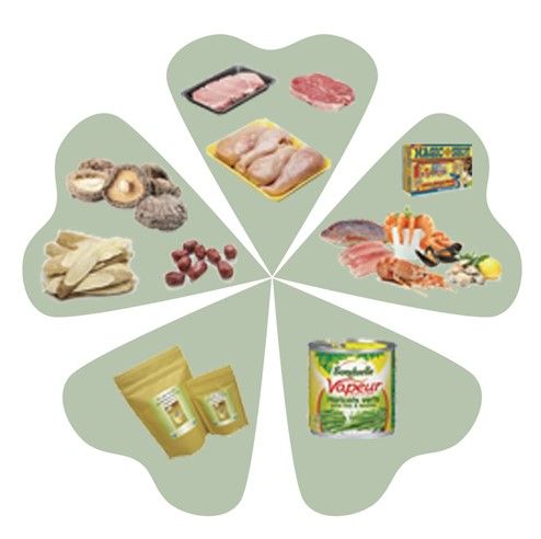 Продукты подаются в определенном порядке с равным интервалом на весовой транспортер с помощью направляющего ограждения.