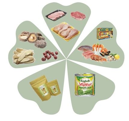 Продукты подаются в определенном порядке с равным интервалом на весовой транспортер с помощью направляющего ограждения.