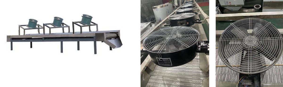 1. Изделия транспортируются лентой и одновременно охлаждаются вентилятором. 2. Части, контактирующие с продуктом, выполнены из нержавеющей стали. Двигатель известной китайской марки. |