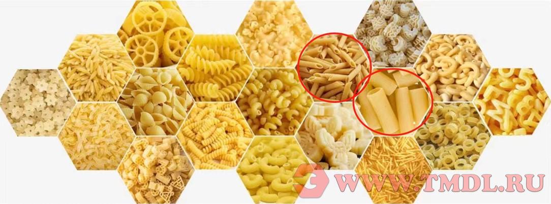 Основные формы изделий: спиральная поверхность, квадратная трубка с косым срезом, квадратная трубка с круглым срезом, ракушка, локтевые макароны и другие формы. По требованиям заказчика также возможна индивидуальная формовка в виде картинок (карточные макароны), специальные и другие формы.