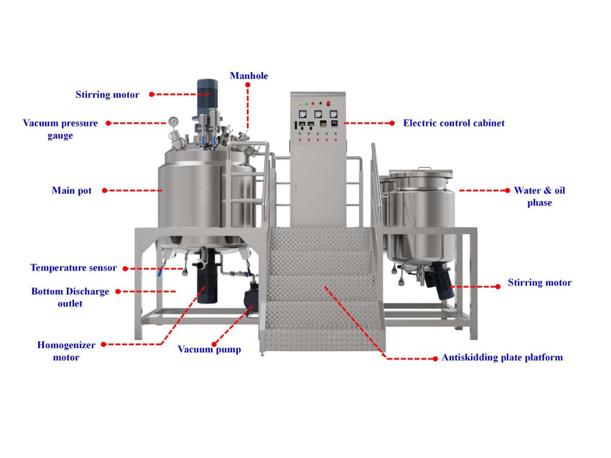 Вакуумный эмульсификатор фиксированного типа 500L с ёмкостями для водной и масляной фаз