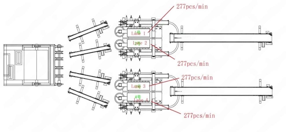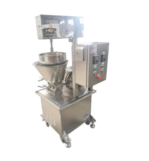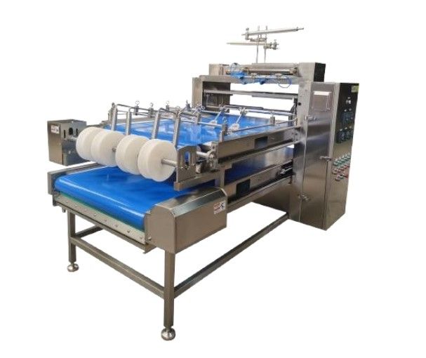 Формирует массу в тонкую ленту (толщиной 1-3 мм, шириной 70-200 мм); длина и ширина регулируются в соответствии с требованиями. Система включает механизм перемешивания для удаления пузырьков воздуха в сурими, предотвращая тем самым образование отверстий в ленте. Бункер имеет двухслойную конструкцию, в межслойном пространстве циркулирует ледяная вода для поддержания температуры сурими и предотвращения денатурации белка.