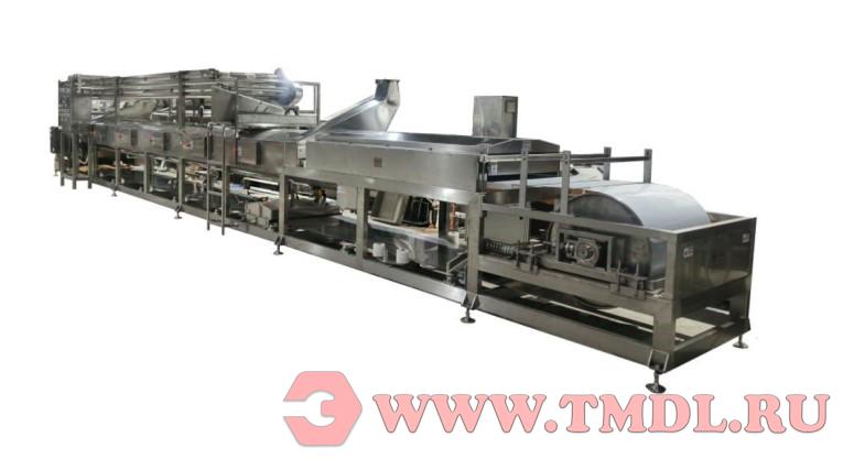 В данной системе используется тоннельная конструкция для пропаривания/обжарки. Сначала форма фиксируется паром (90-94°C), после чего продукт полностью готовится с помощью инфракрасной обжарки. Оборудование оснащено конвейерной лентой из нержавеющей стали и системой автоматической корректировки смещения.