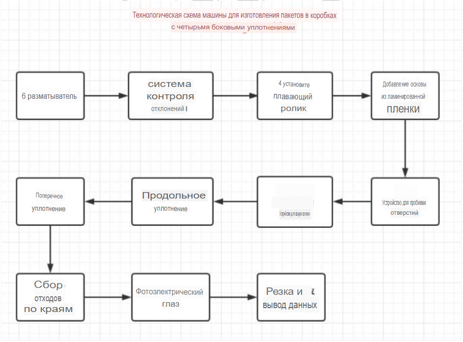 | Функция | Производство пакетов типа «пакет в коробке» с четырёхсторонней запайкой |