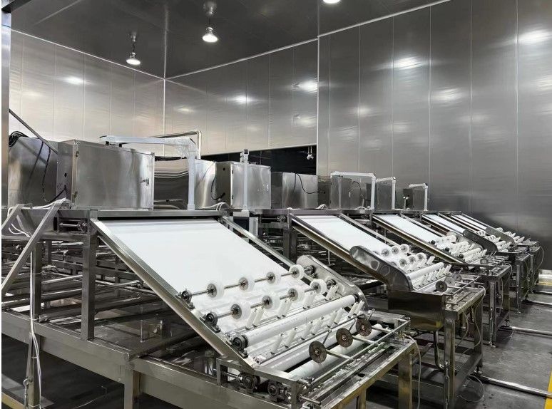 Сушильная линия Включает: • Разделитель рулонов сушеной соевой пенки • Термостойкая конвейерная лента • Основная машина из нержавеющей стали • PLC система автоматического управления • Система автоматического обогрева |