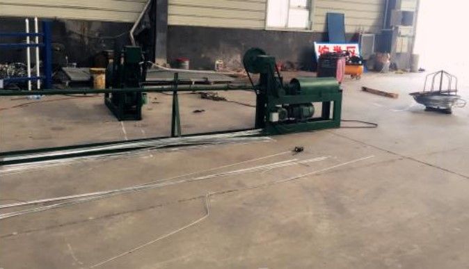 - И основа, и уток предварительно выпрямляются и режутся. Основа укладывается на платформу вручную, уток автоматически подается по одному. Система обеспечивает точное позиционирование уточной проволоки.