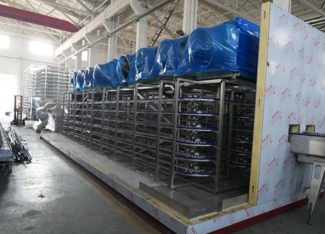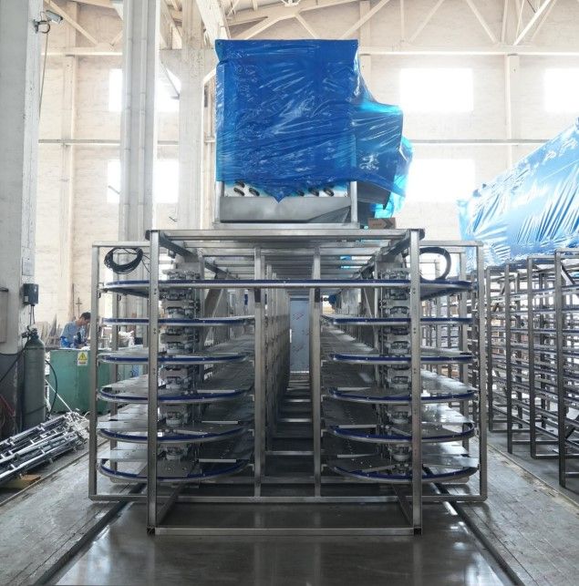 МОРОЗИЛЬНЫЙ ТОННЕЛЬ включает раму тоннеля и цепь. Все части тоннеля спроектированы и изготовлены по новой передовой технологии. Рама построена так, чтобы выдерживать максимальное тепловое расширение. Каждый ярус тоннеля оснащен пружиной для регулировки натяжения цепи при ее тепловом расширении. Также вся система оборудована устройством аварийной остановки на случай возникновения проблем с тоннелем или цепью. Оснащен комплектом нержавеющих пластин для палочного мороженого по требованию заказчика.