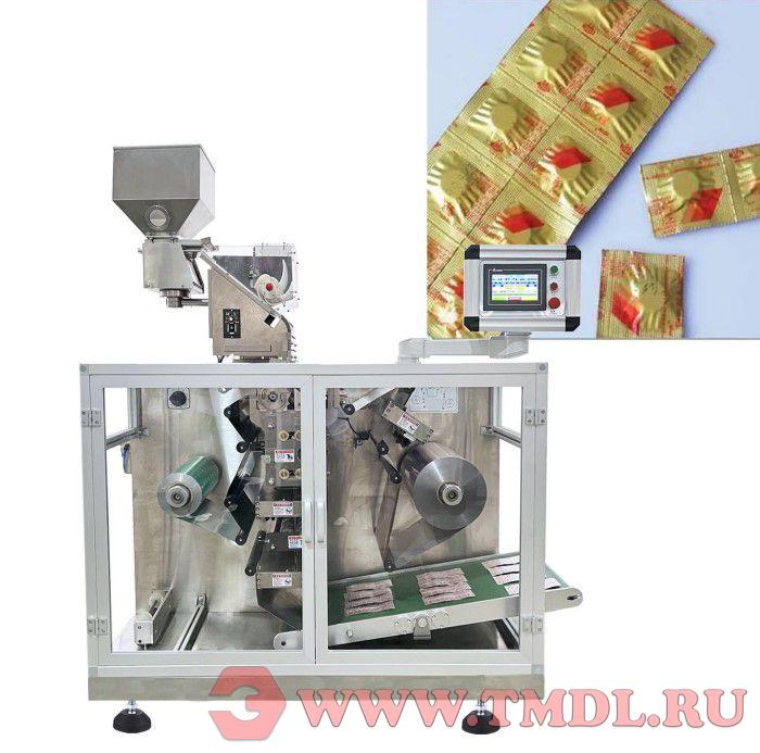 Вся установка управляется программируемым контроллером и программируемой сенсорной панелью, которые контролируют каждую точку действий. Это гарантирует возможность автоматического наполнения неглазированных или глазированных таблеток и капсул в два слоя алюминиевых материалов с последующей упаковкой в блистеры. Длину блистерной полосы (тяговое усилие полосы) можно изменять на сенсорном экране по вашему требованию. Для изменения длины блистерной упаковки или перехода на разные листы достаточно легко отрегулировать некоторые ролики и снять нож.