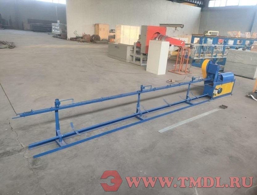 1. Состоит из подающего лотка, правильной машины, тянущего устройства, режущего механизма, опорной рамы, электродвигателя с вращательным механизмом и электрораспределительного щита.
