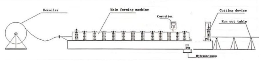 Разматывание рулона --- Профилирование --- Гидравлическая резка --- Приёмный стол