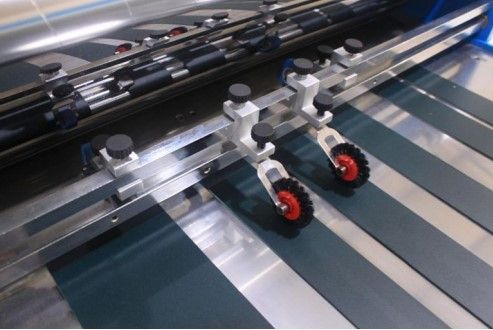 Передний упор с сервомотором для автоматического нахлеста, что повышает его точность. Ввод длины бумаги в машину упрощает операцию.