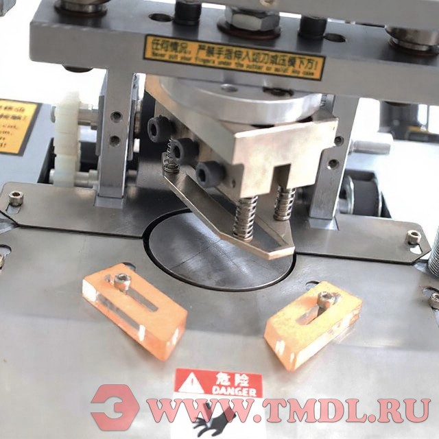 Это ультразвуковой резак для текстильной ленты и шнуров. Благодаря смене режущего штампа машина позволяет выполнять фигурную (специальной формы) резку в соответствии с требованиями заказчика.